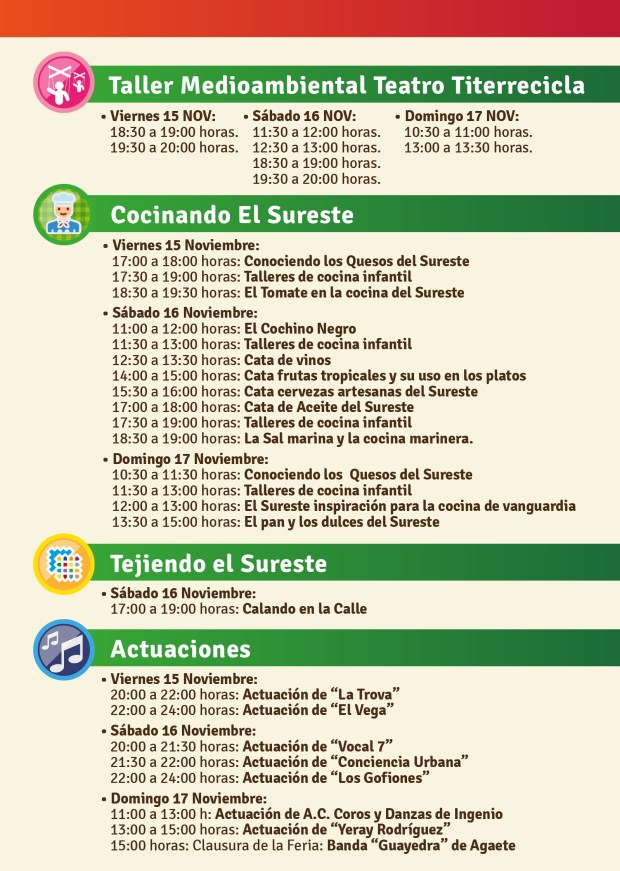 En esta ocasión participan los principales actores del sector agropecuario municipal (agricultores, ganaderos, queserías, salinas, bodegas, almazaras, productores de café y miel): Quesería La Era del Cardón, Salinas Bocacangrejo, Huerta El Cordel, Oro Canario, Bodega Municipal Señorío de Agüimes, Almazara Municipal Caserío de Temisas, Viñas Aguayro, Finca Los Barros, Café Jalurana, Museo Gastronómico Aragüeme, Belén Gutiérrez Vélez, Javier Granucci, Alexander Bordón López y Turismo Rural Agüimes.