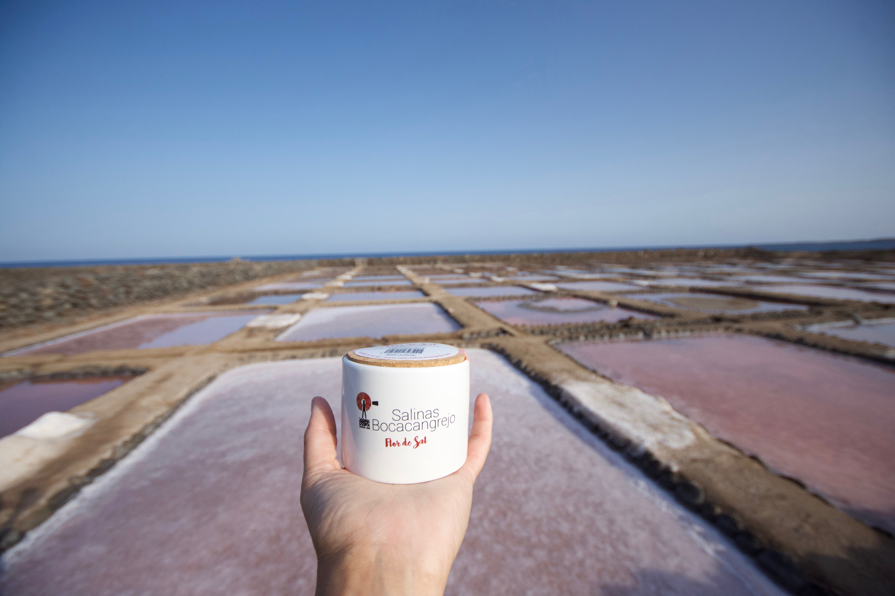 La flor de sal se forma en la superficie del agua. Son cristales blancos de sutil textura. Se deshacen en boca con una explosión de sabor marino. Tiene más proporción de yodo natural y oligoelementos. Su pureza y cristalización hacen de ella el producto de excelente calidad. Tiene un mayor valor por ser recogida de manera artesanal bajo ciertas circunstancias climáticas específicas. Las cantidades son limitadas.