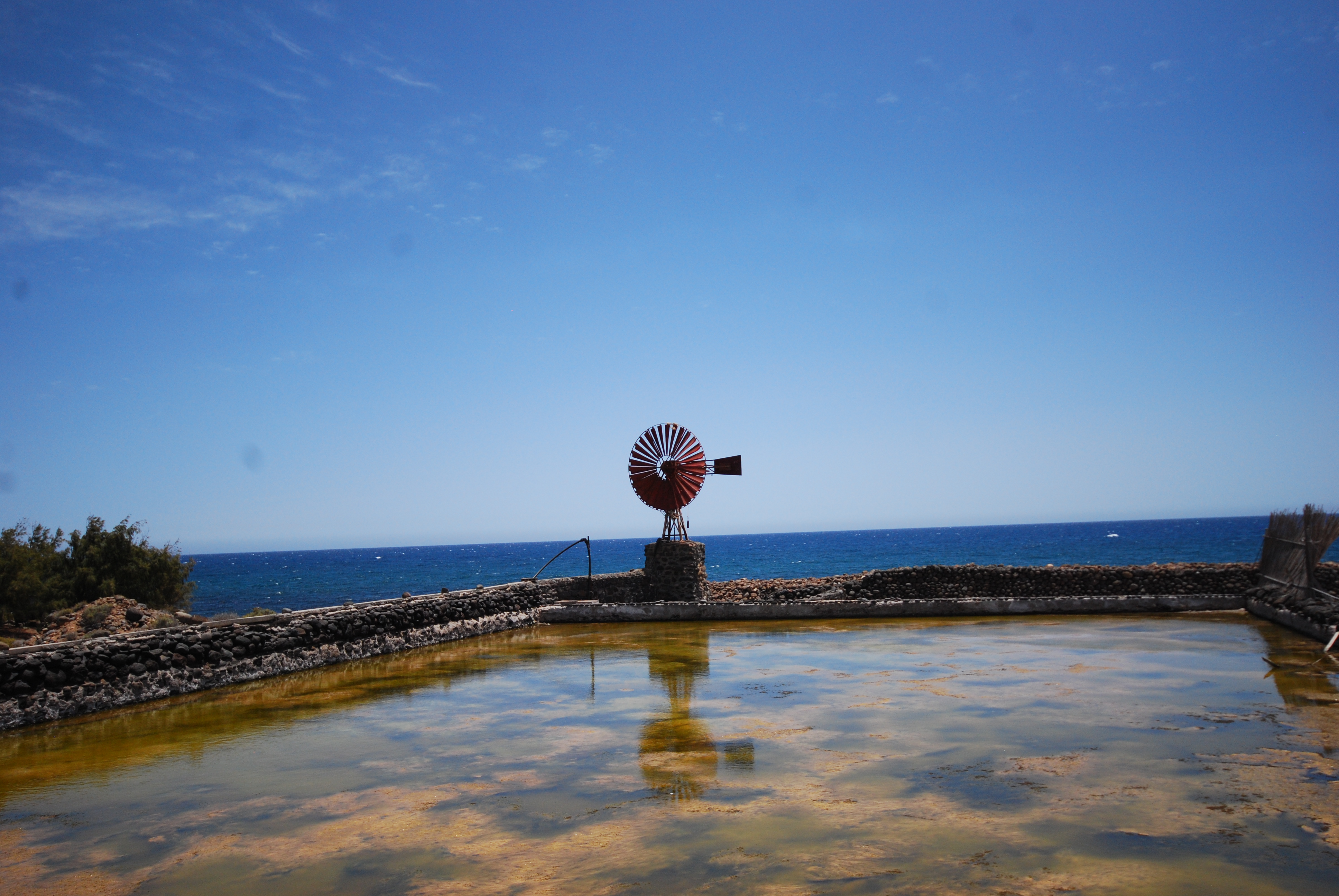 The old windmill of circular blades, more than 150 years old was destroyed by a storm in 2018. Formerly this saline had its well-earned fame with the qualification of having been the «larder of the island» in the quality and quantity of salt, being at that time transported on the backs of donkeys, mules and carts along roads and paths, passing through the agricultural area of La Florida via Carrizal and from there to Ingenio, Agüimes, Telde, Las Palmas and south. At that time, salt was used as currency. There were exchanges of salt for food from the land.